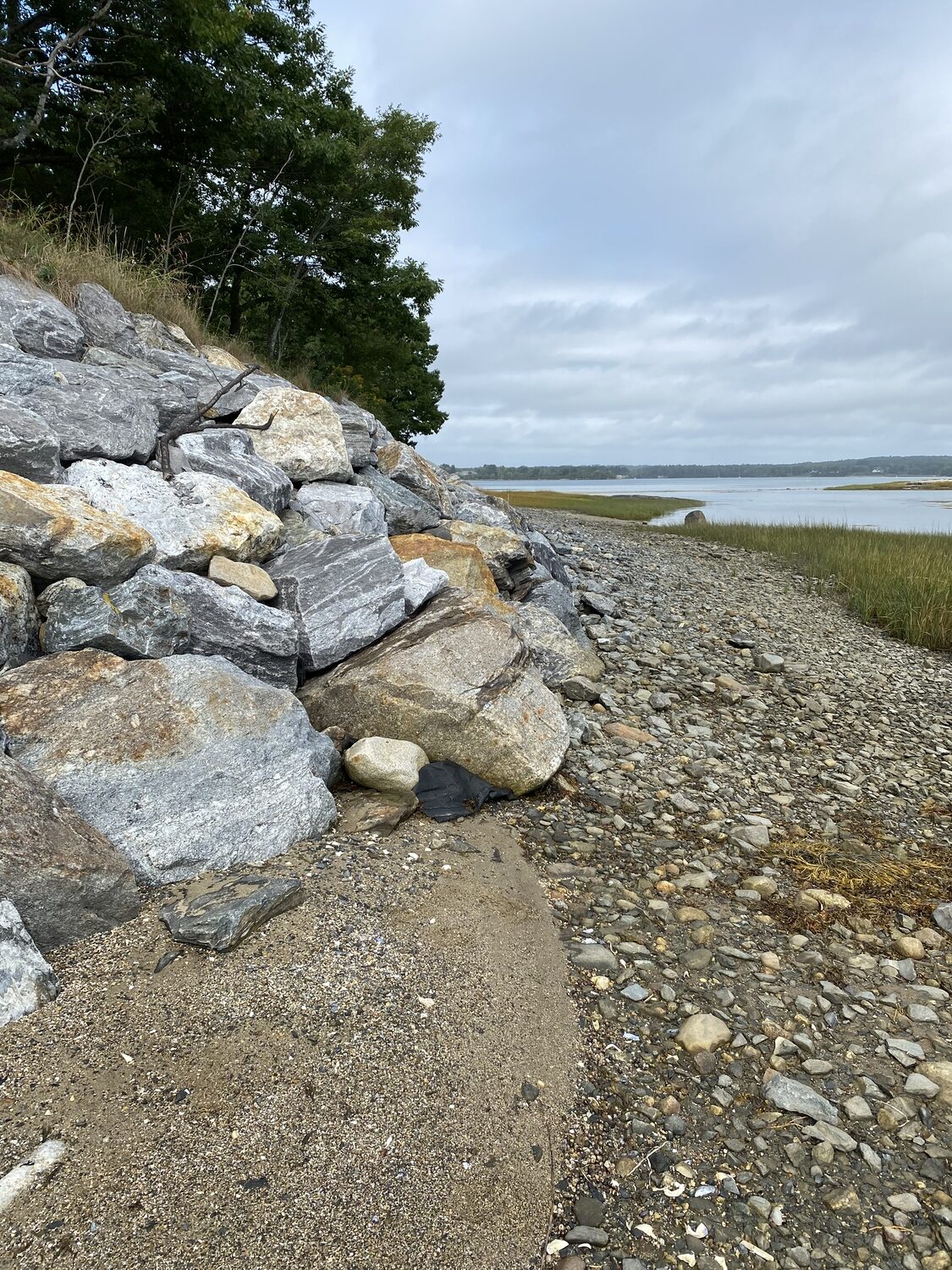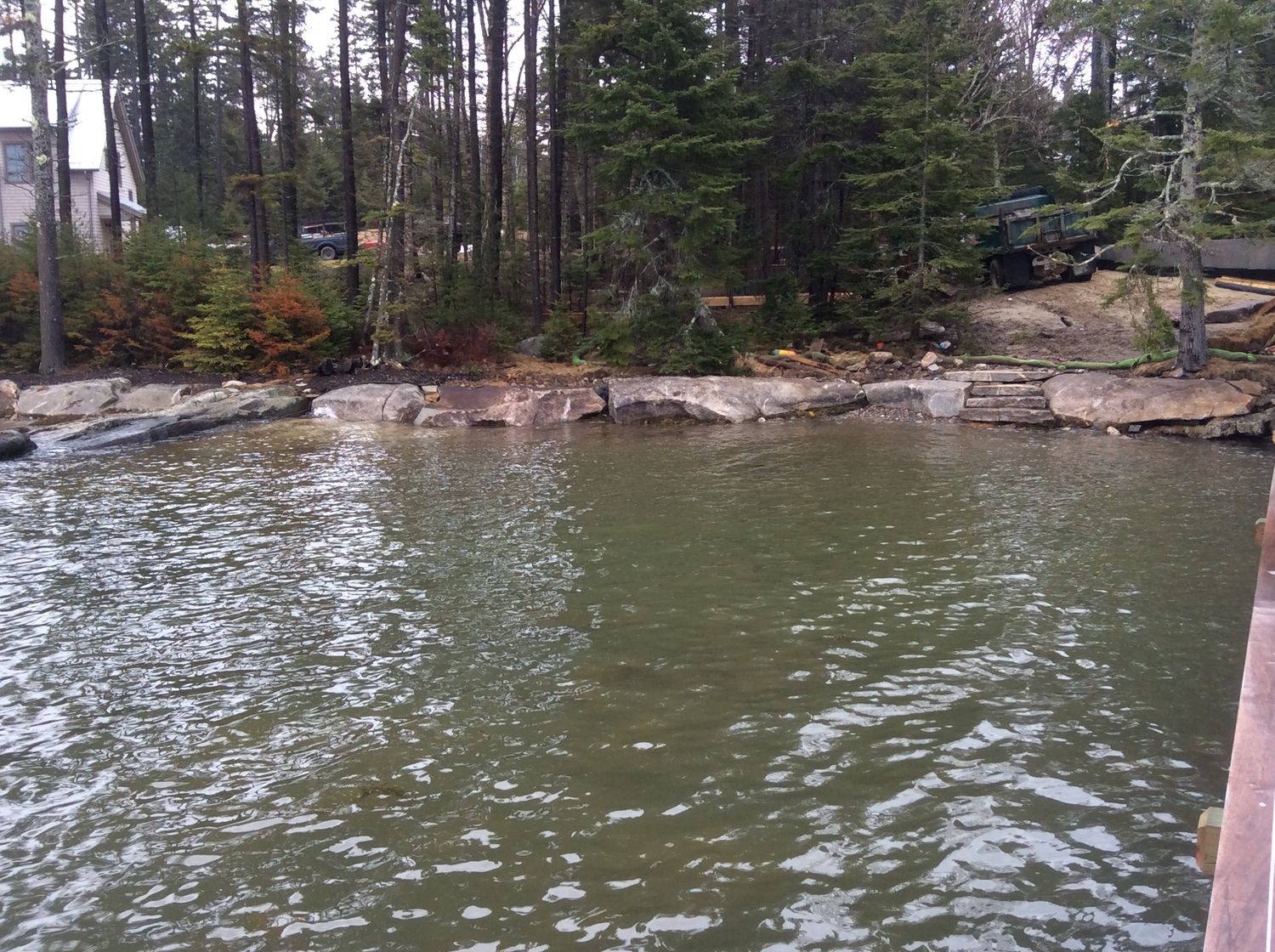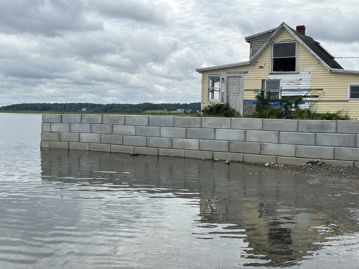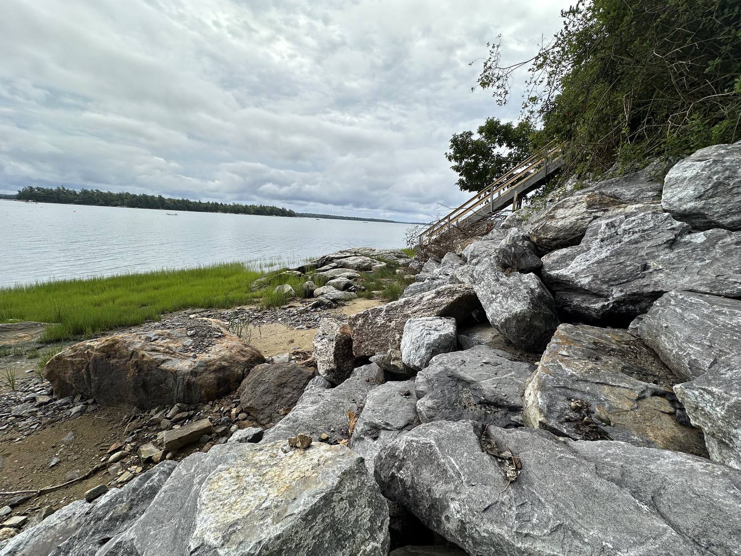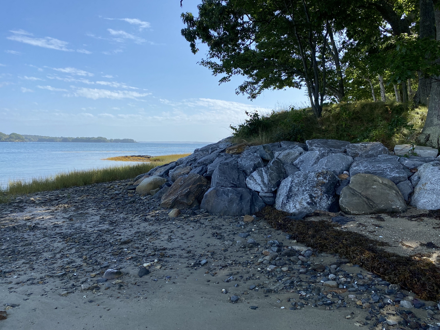 Blasted quarry stones create a jagged structure that dissipates wave energy