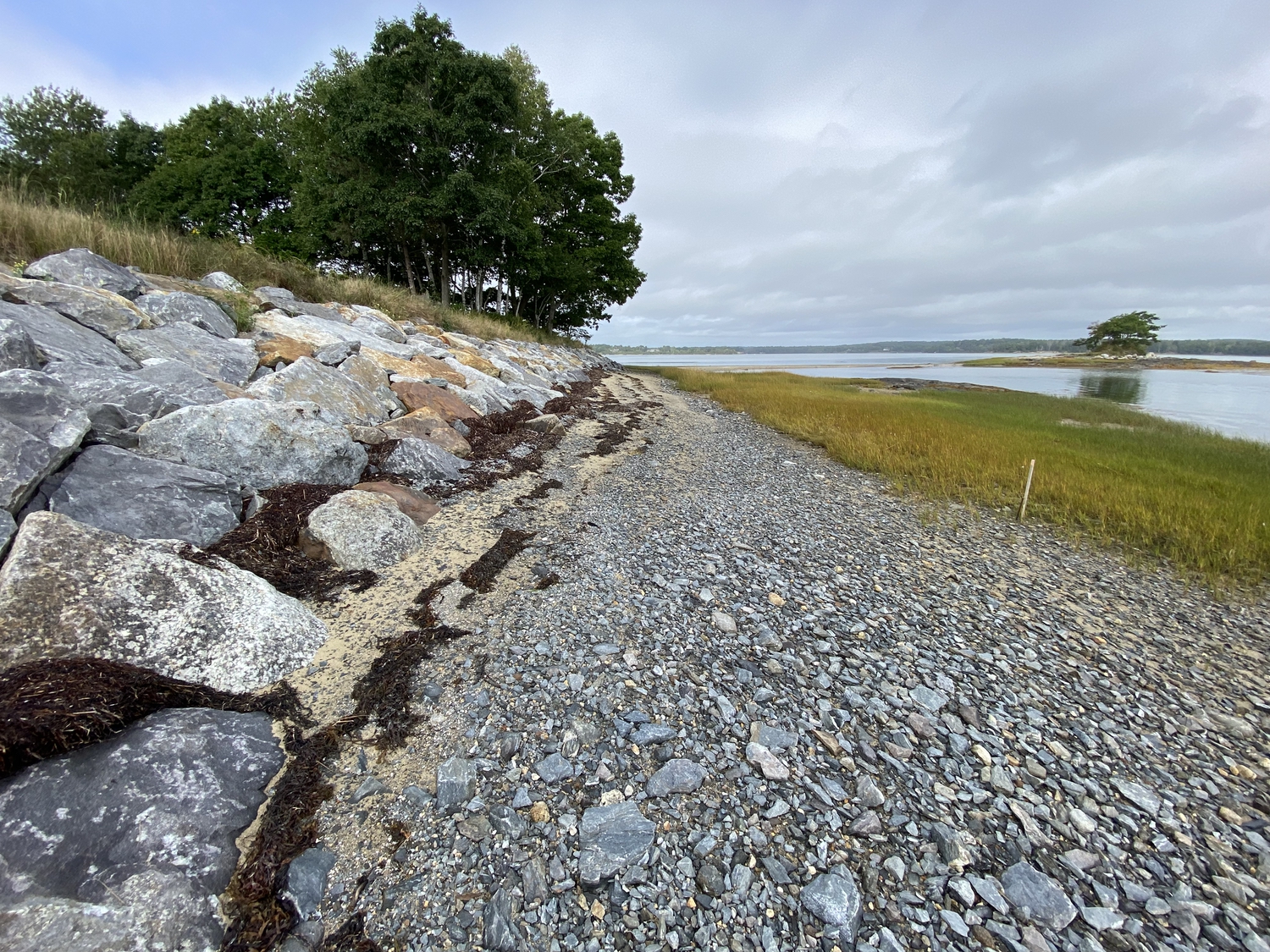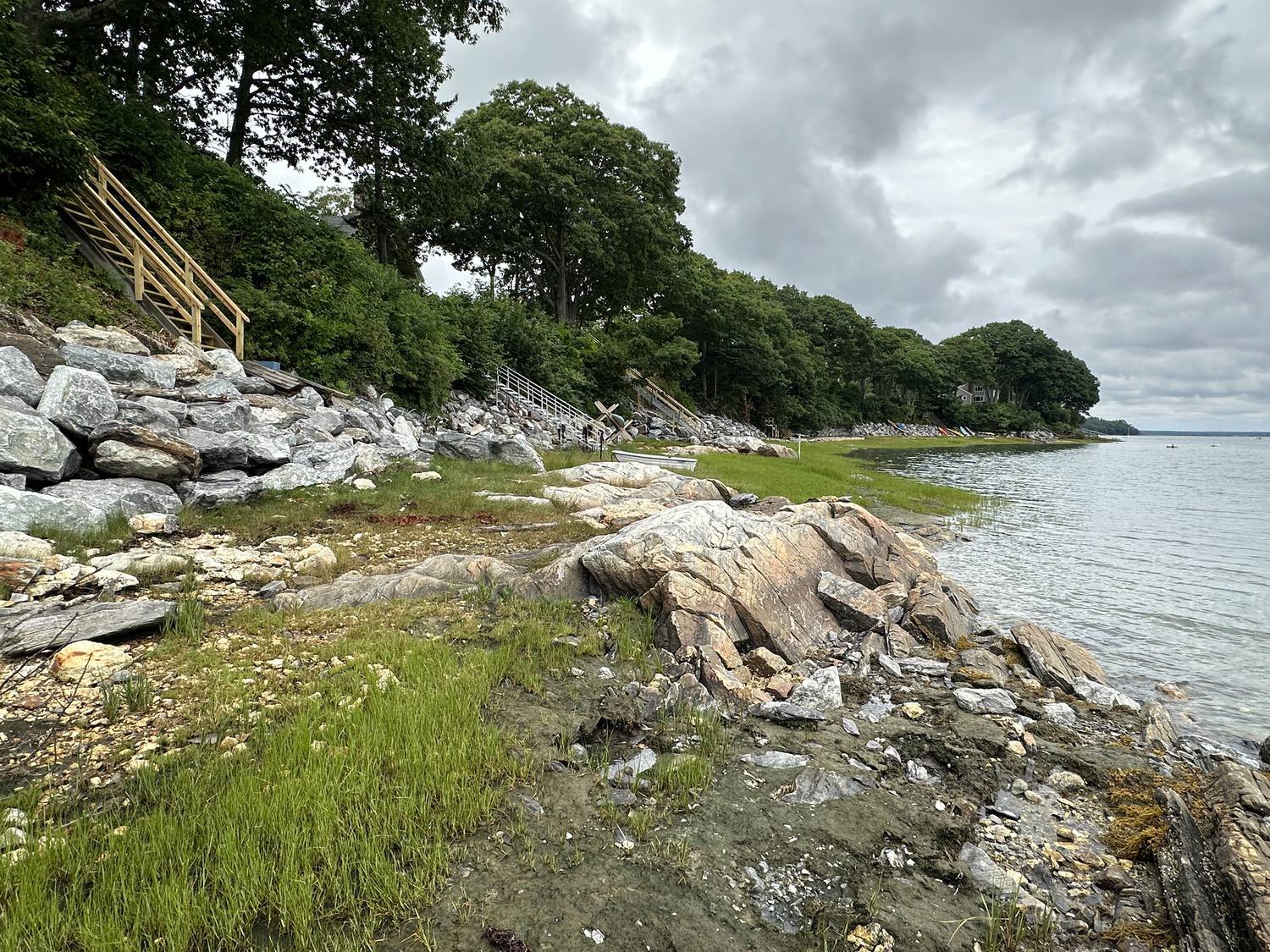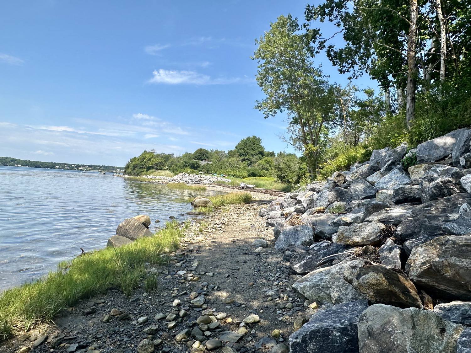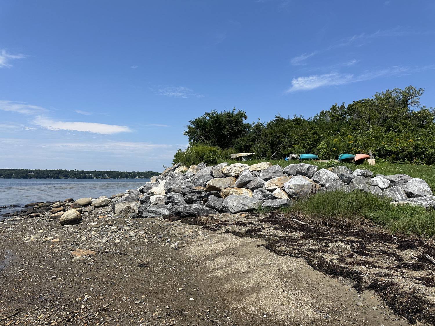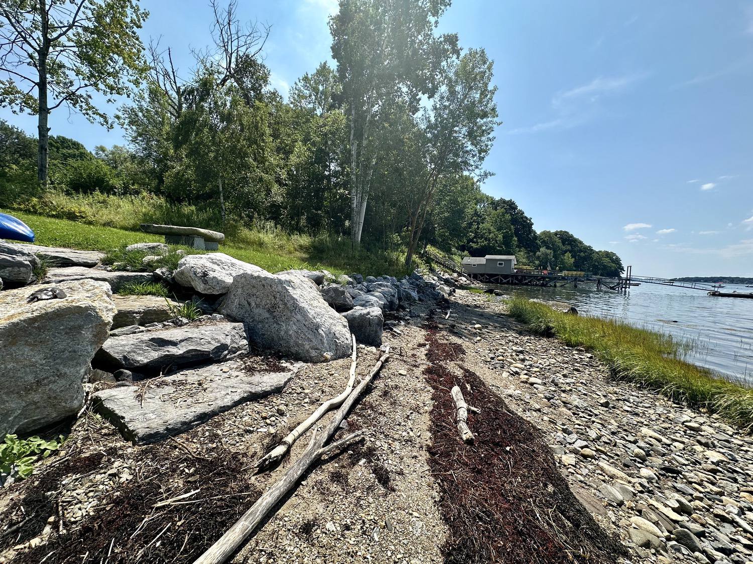 Blasted quarry stones create a jagged structure that dissipates wave energy