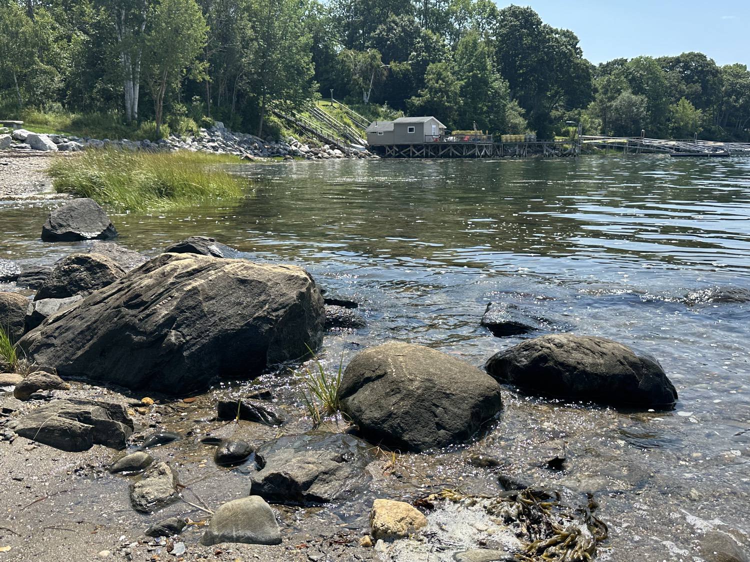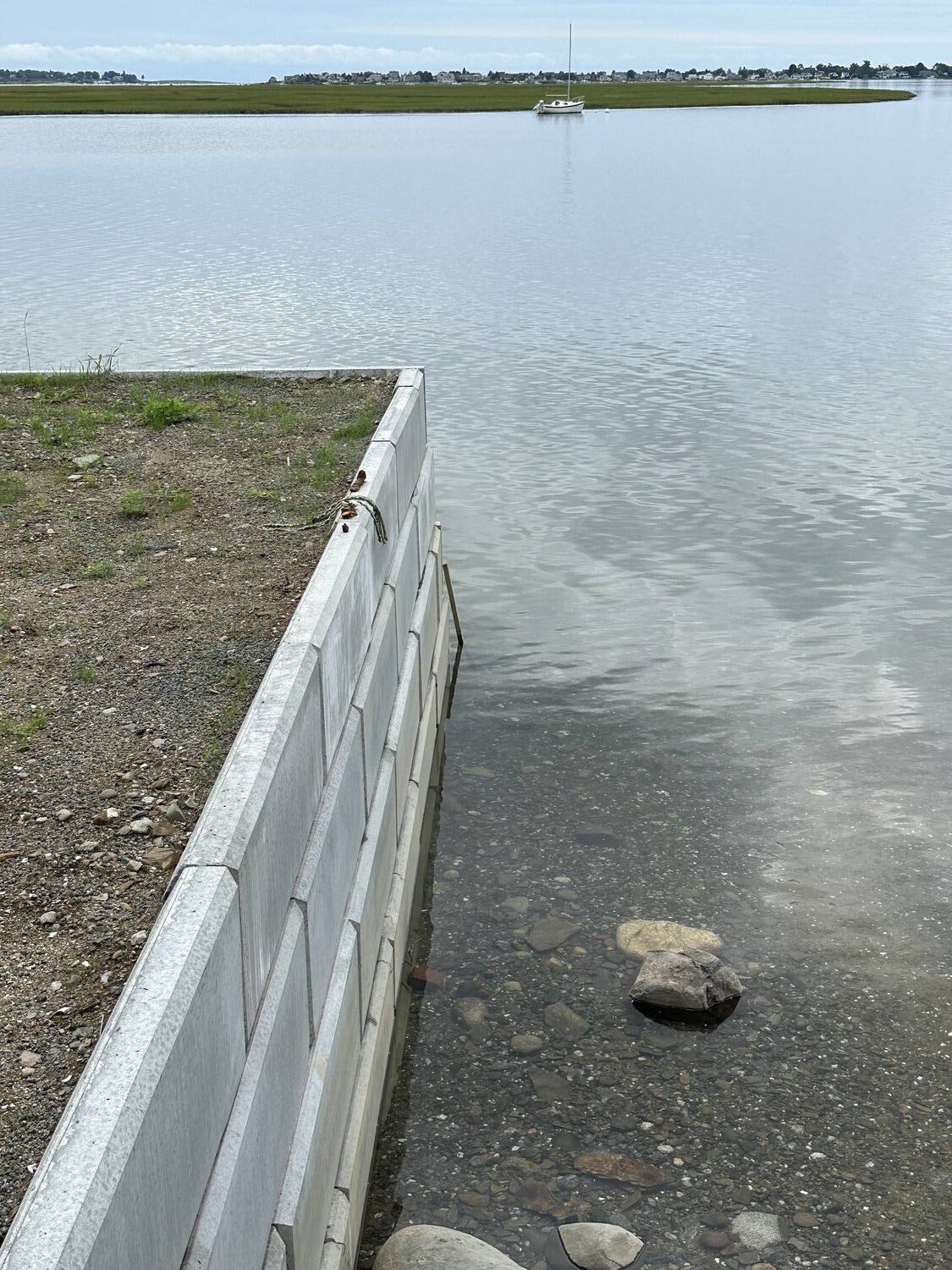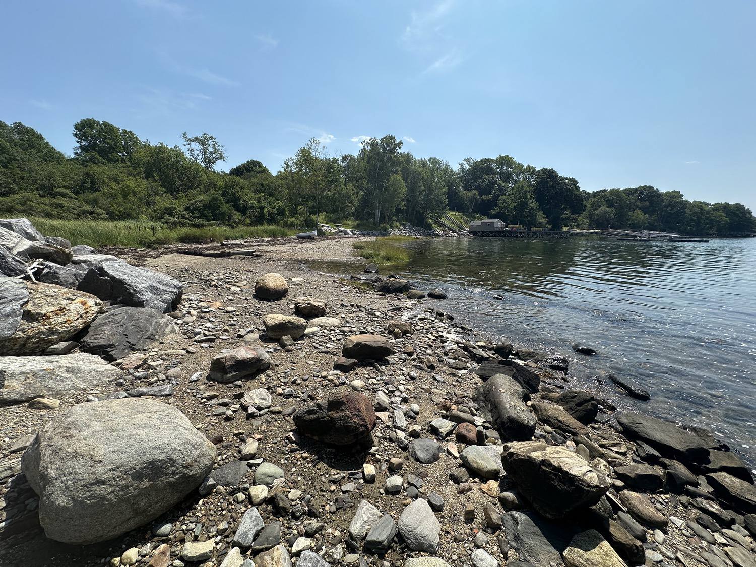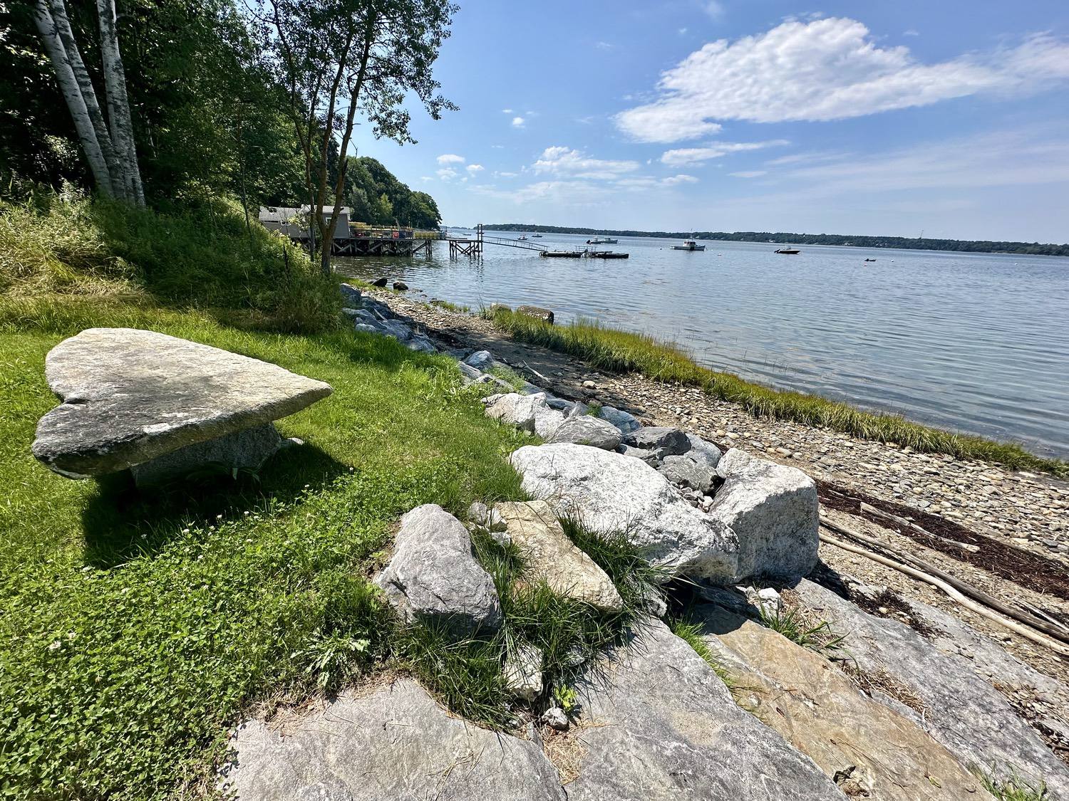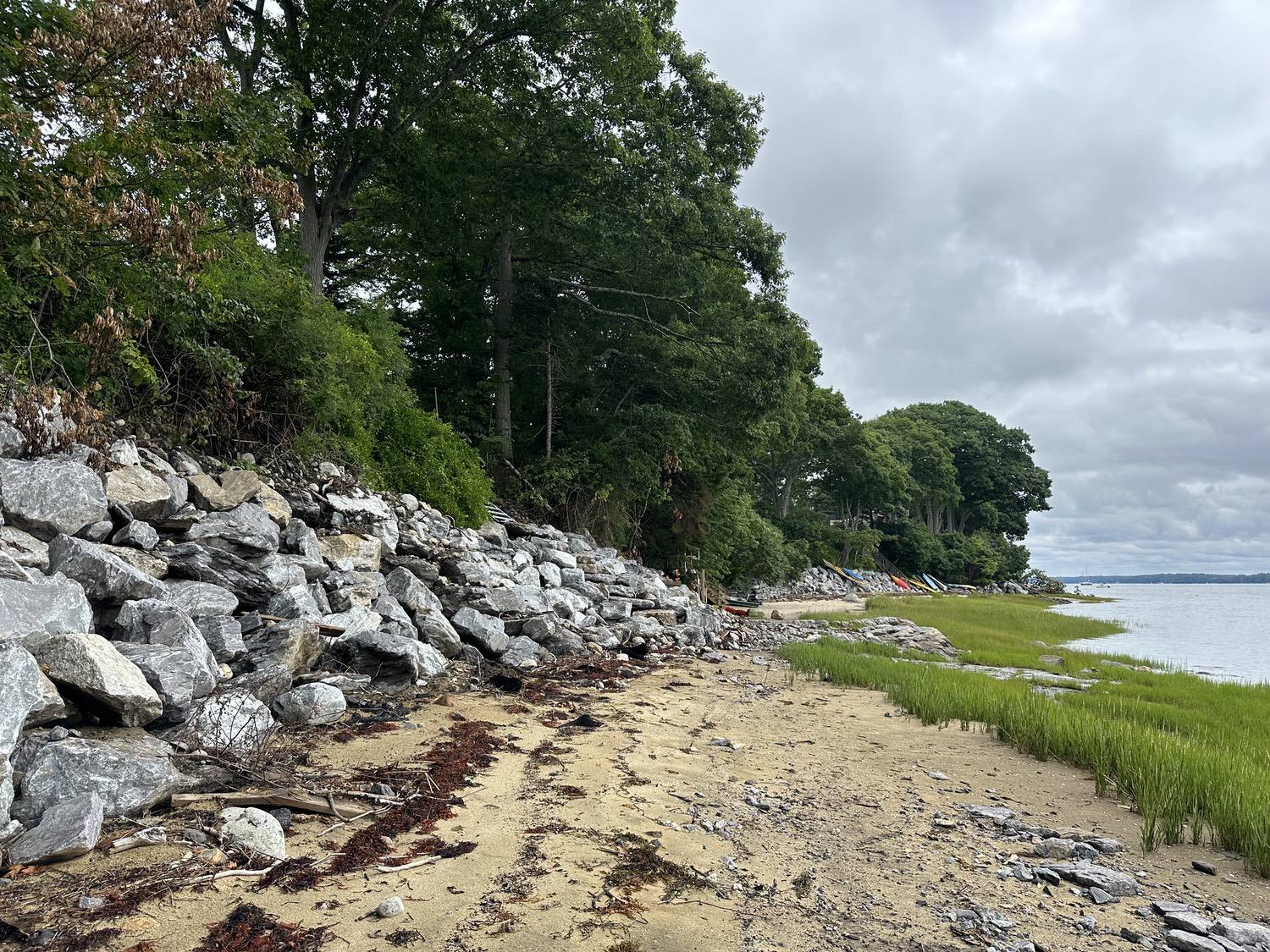Blasted quarry stones create a jagged structure that dissipates wave energy