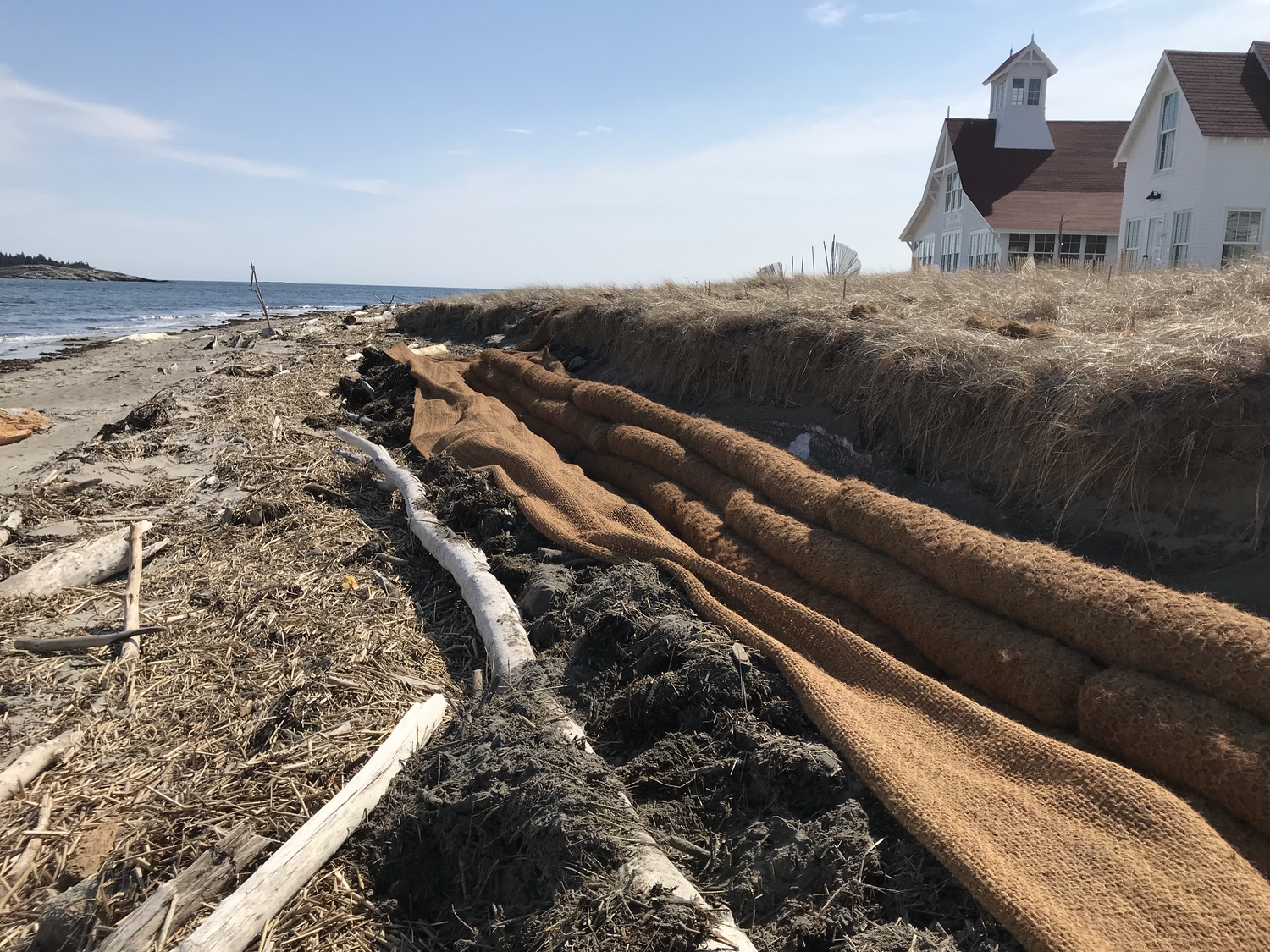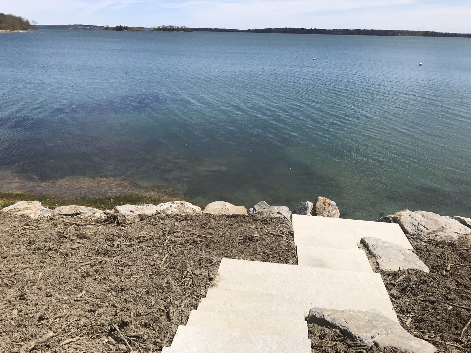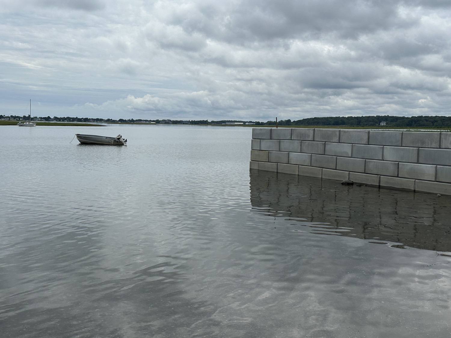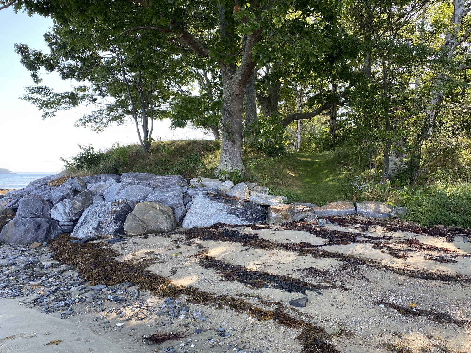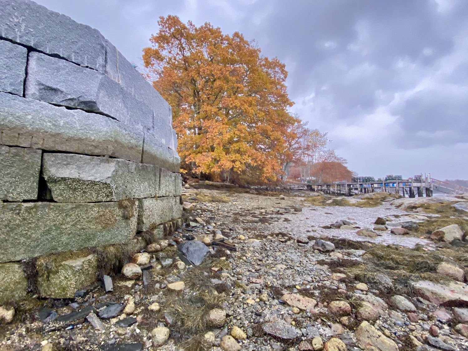 Blasted quarry stones create a jagged structure that dissipates wave energy