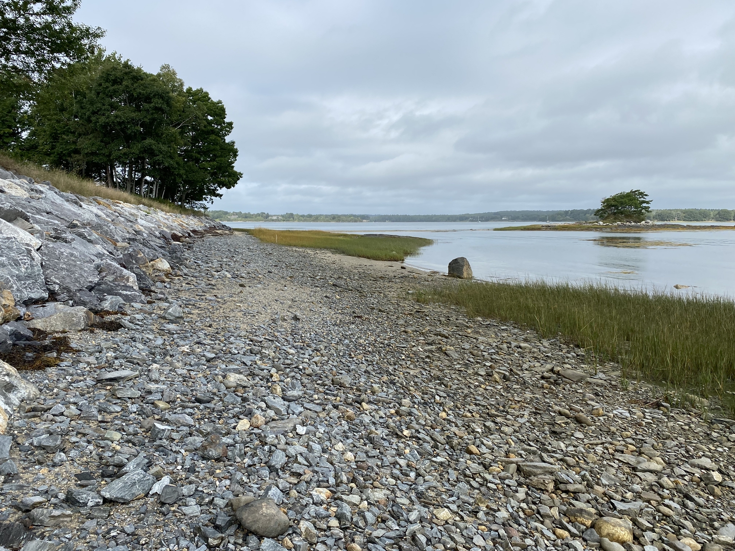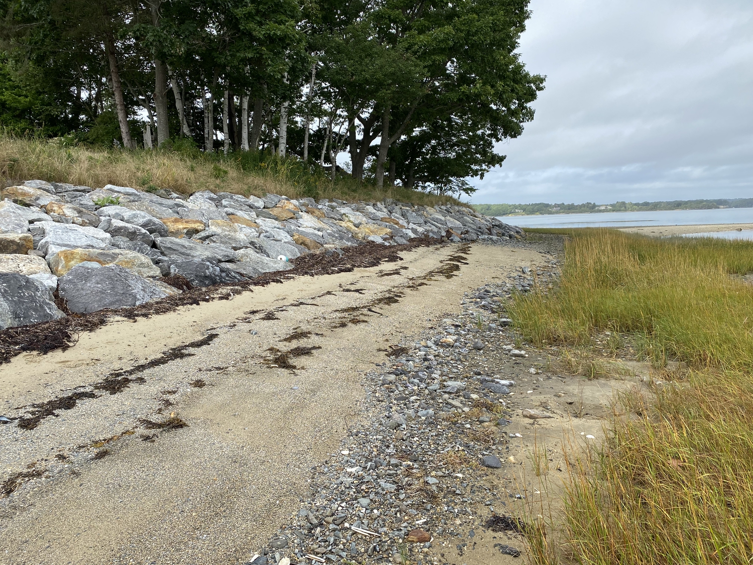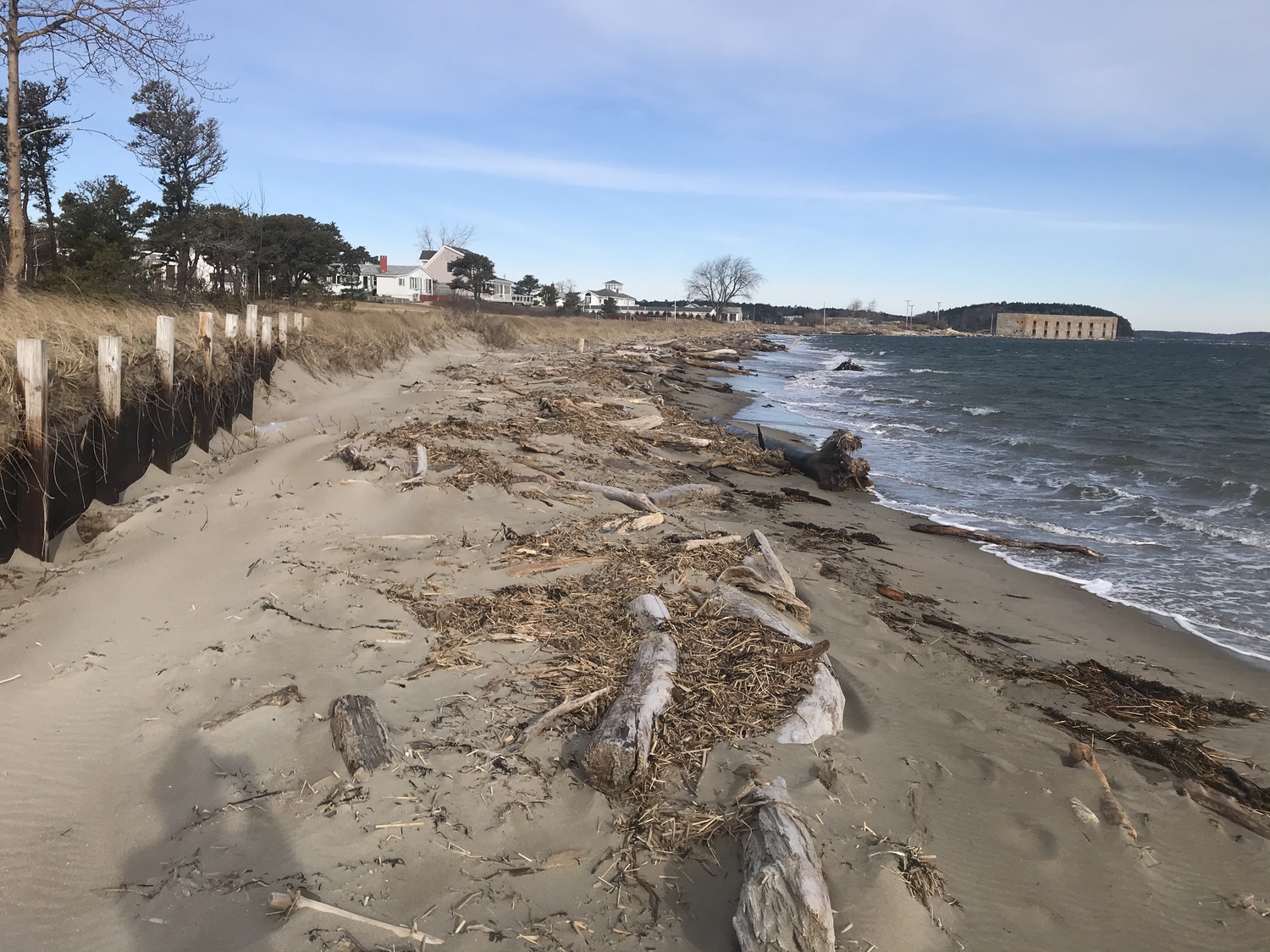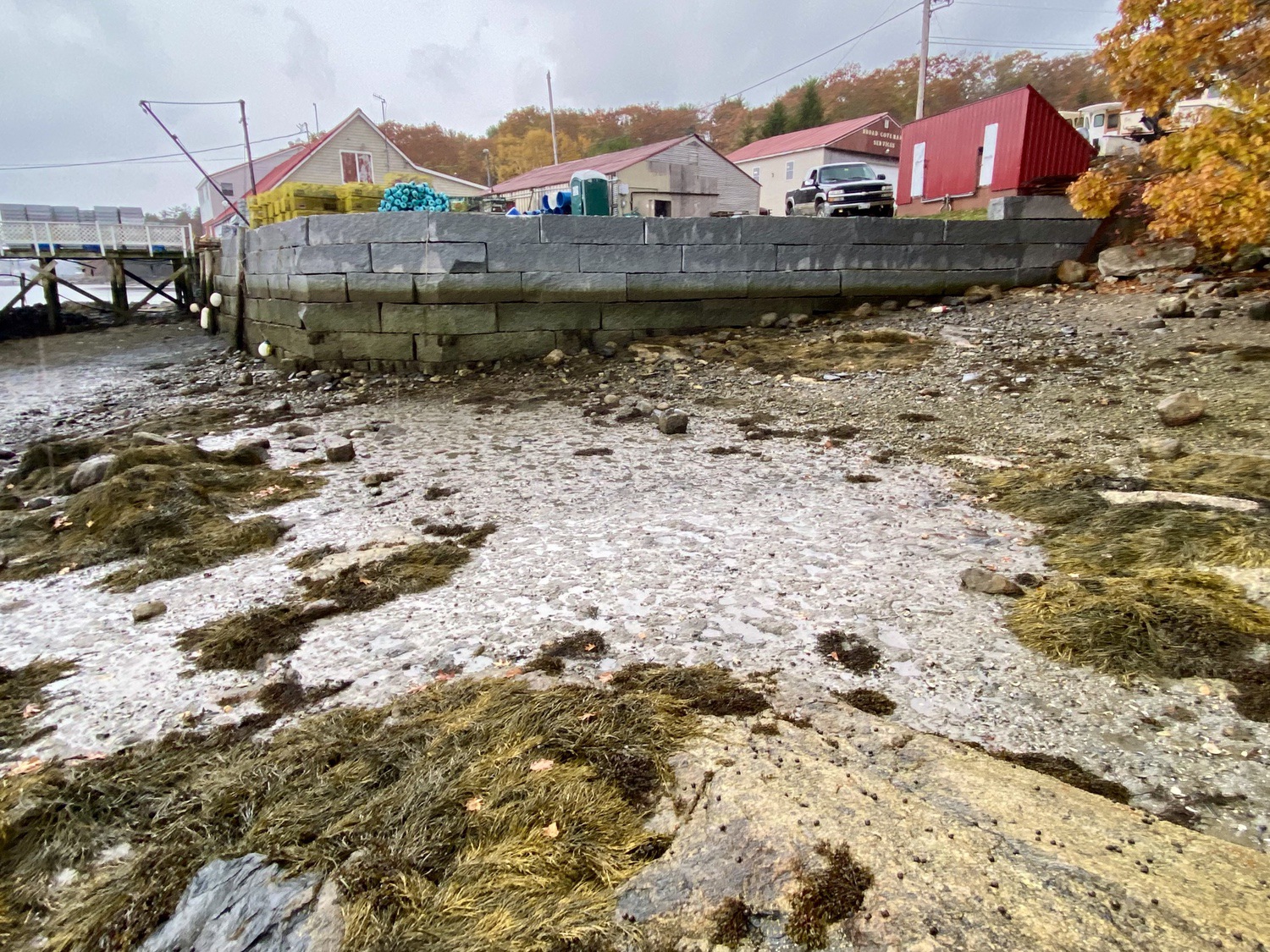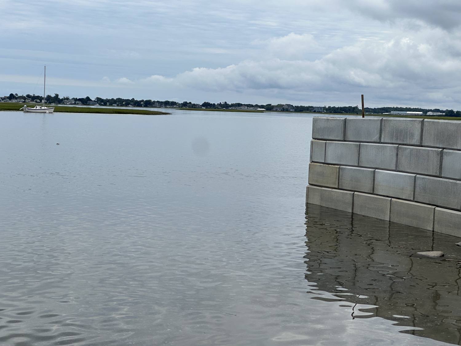 Blasted quarry stones create a jagged structure that dissipates wave energy