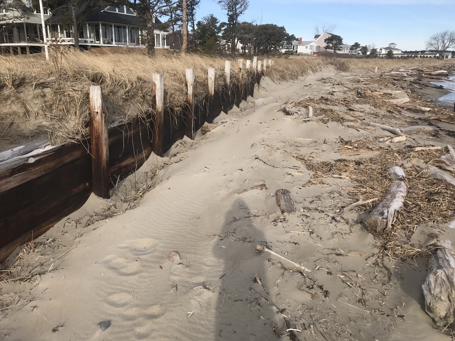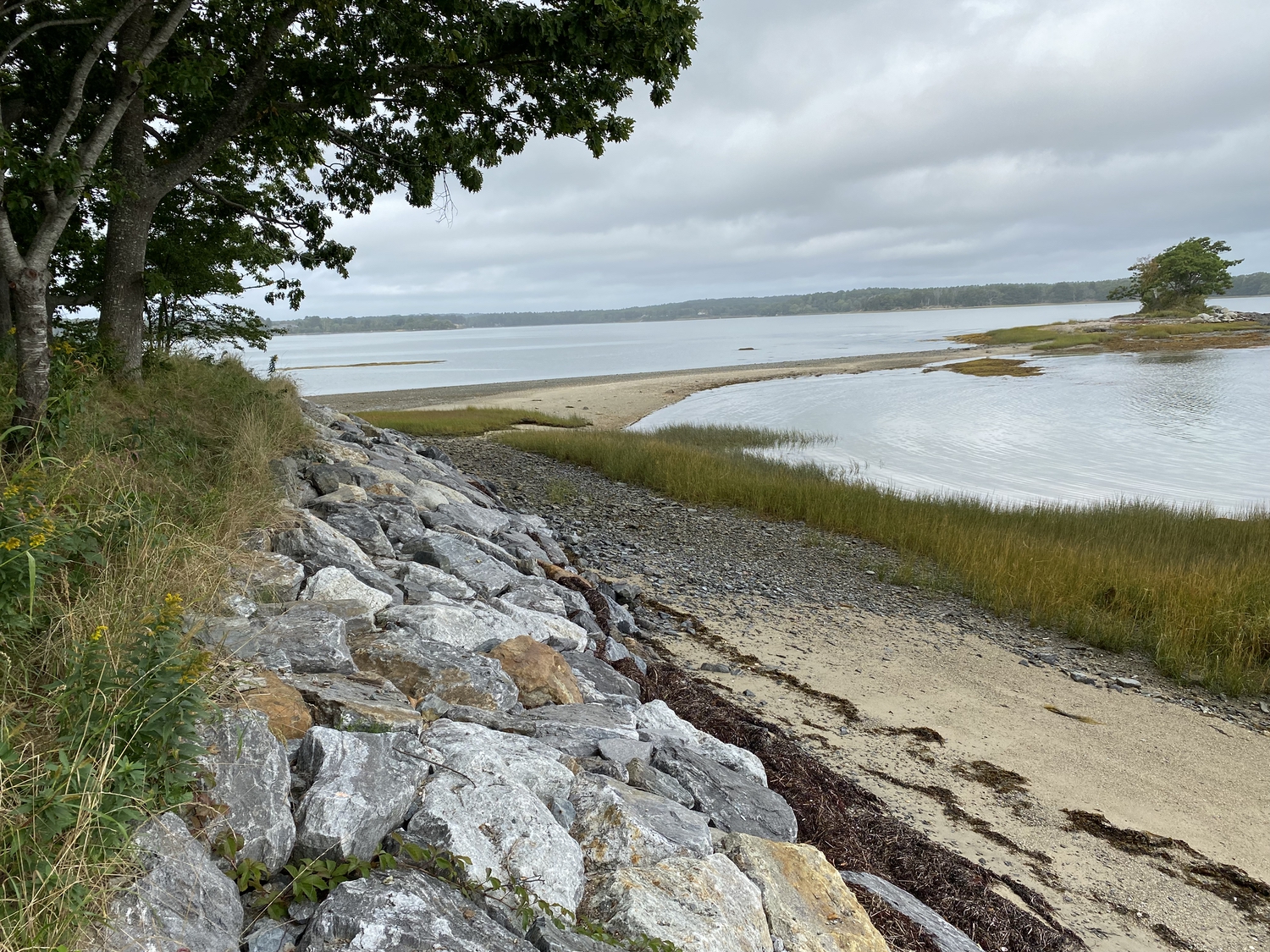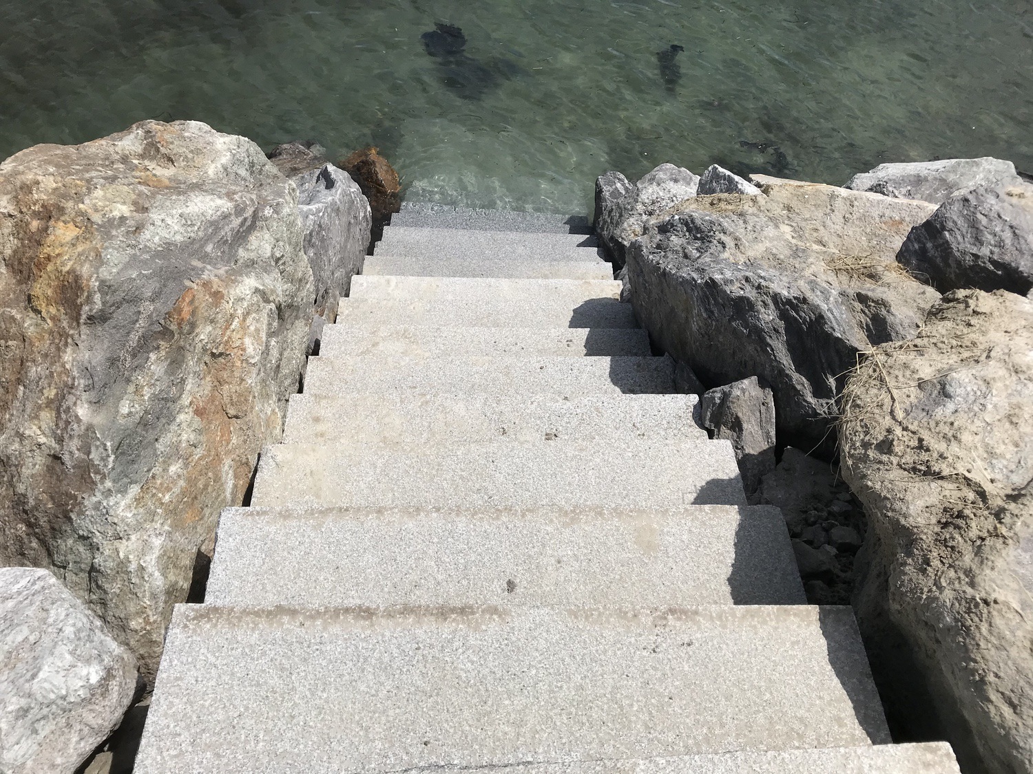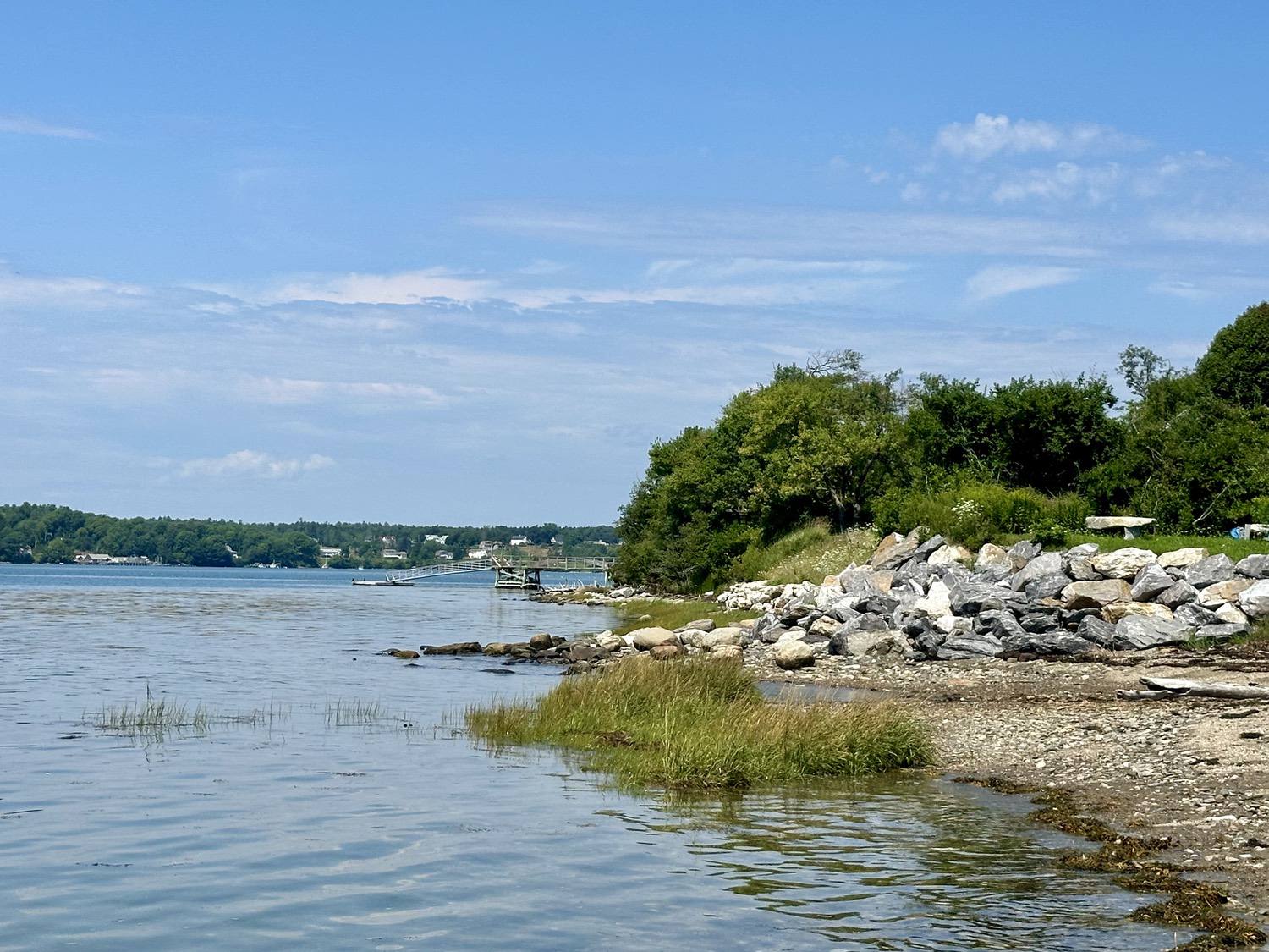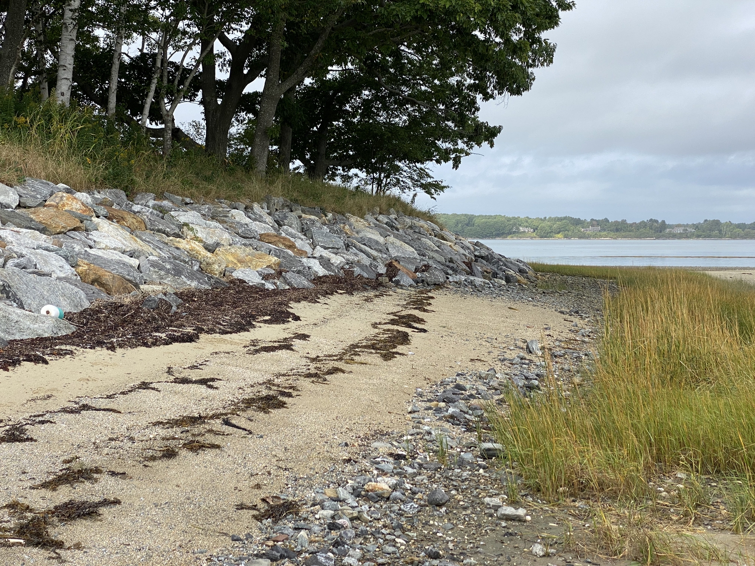 Blasted quarry stones create a jagged structure that dissipates wave energy