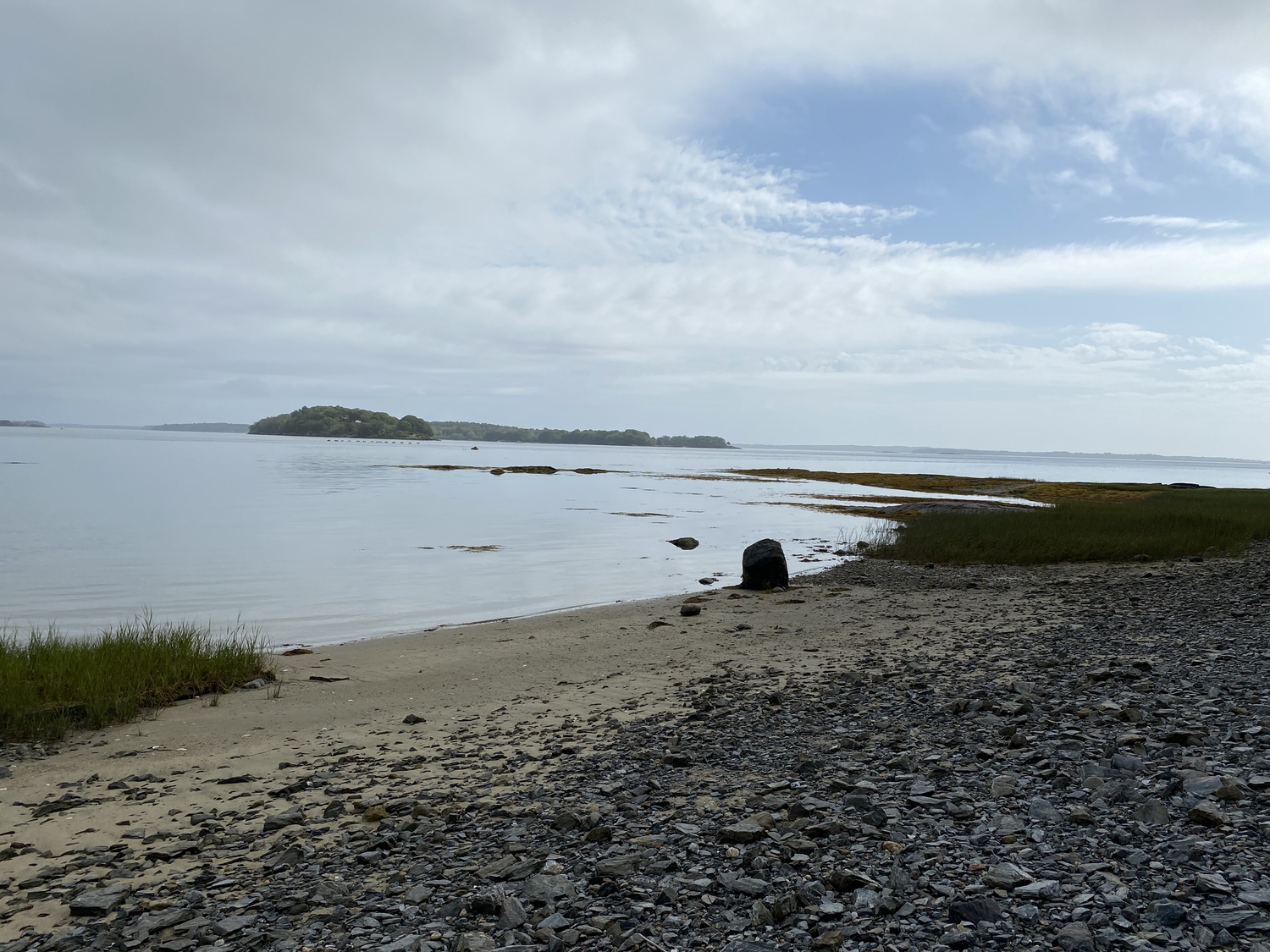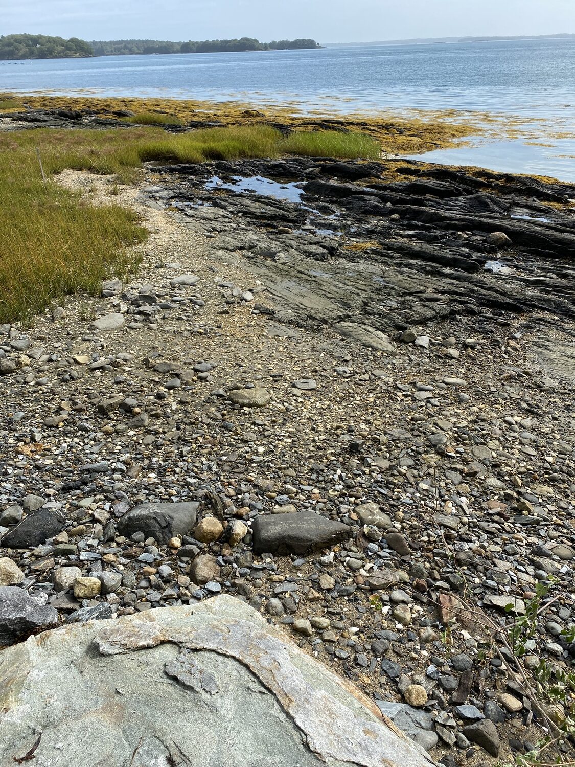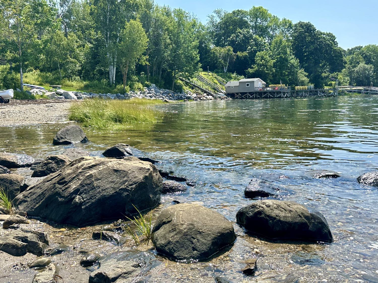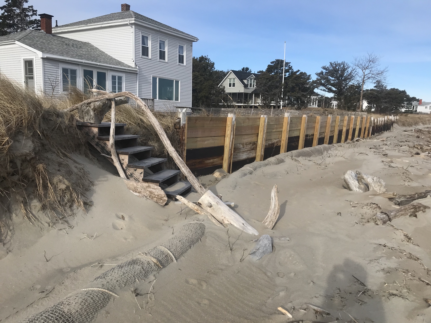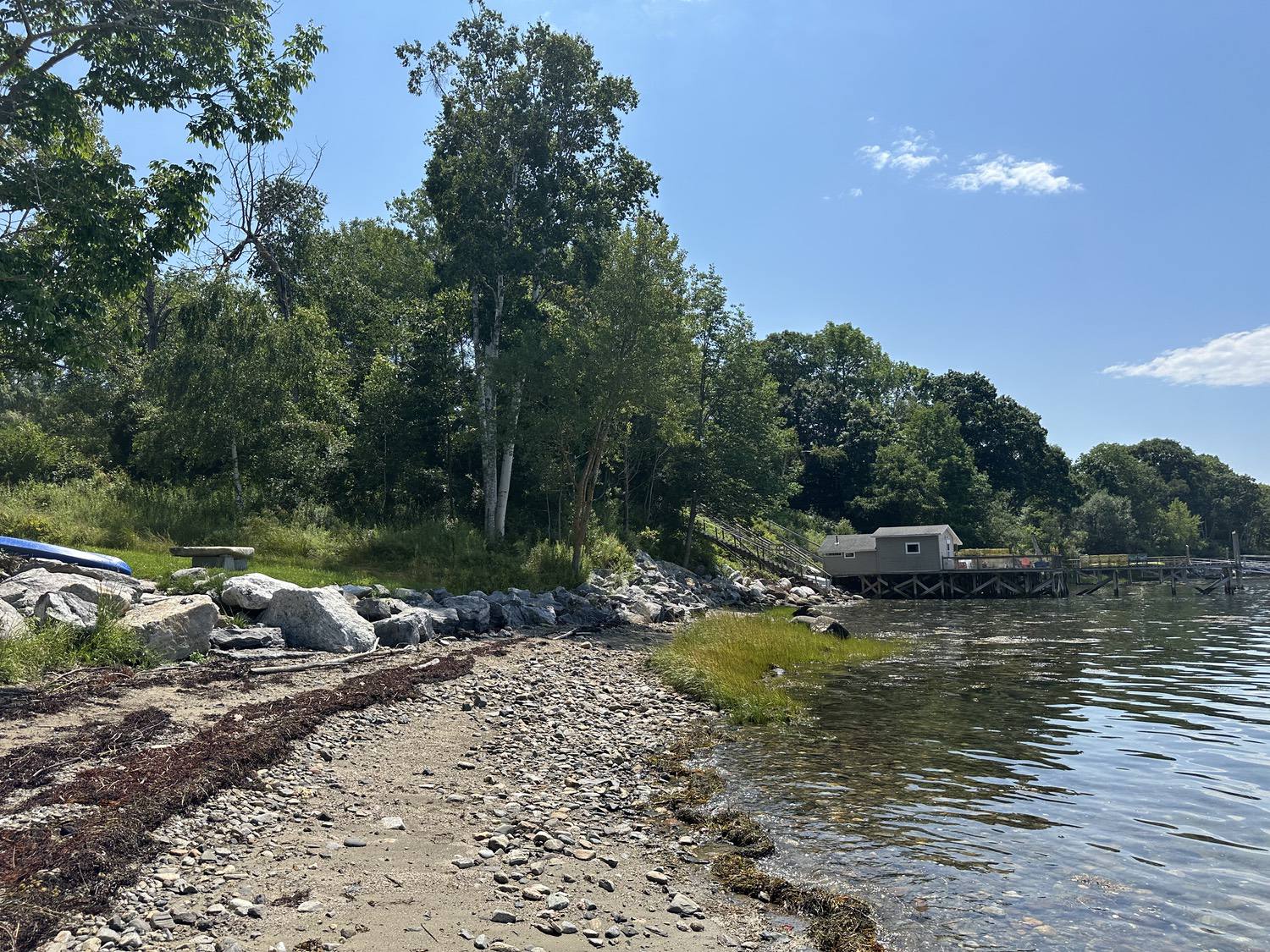 Blasted quarry stones create a jagged structure that dissipates wave energy