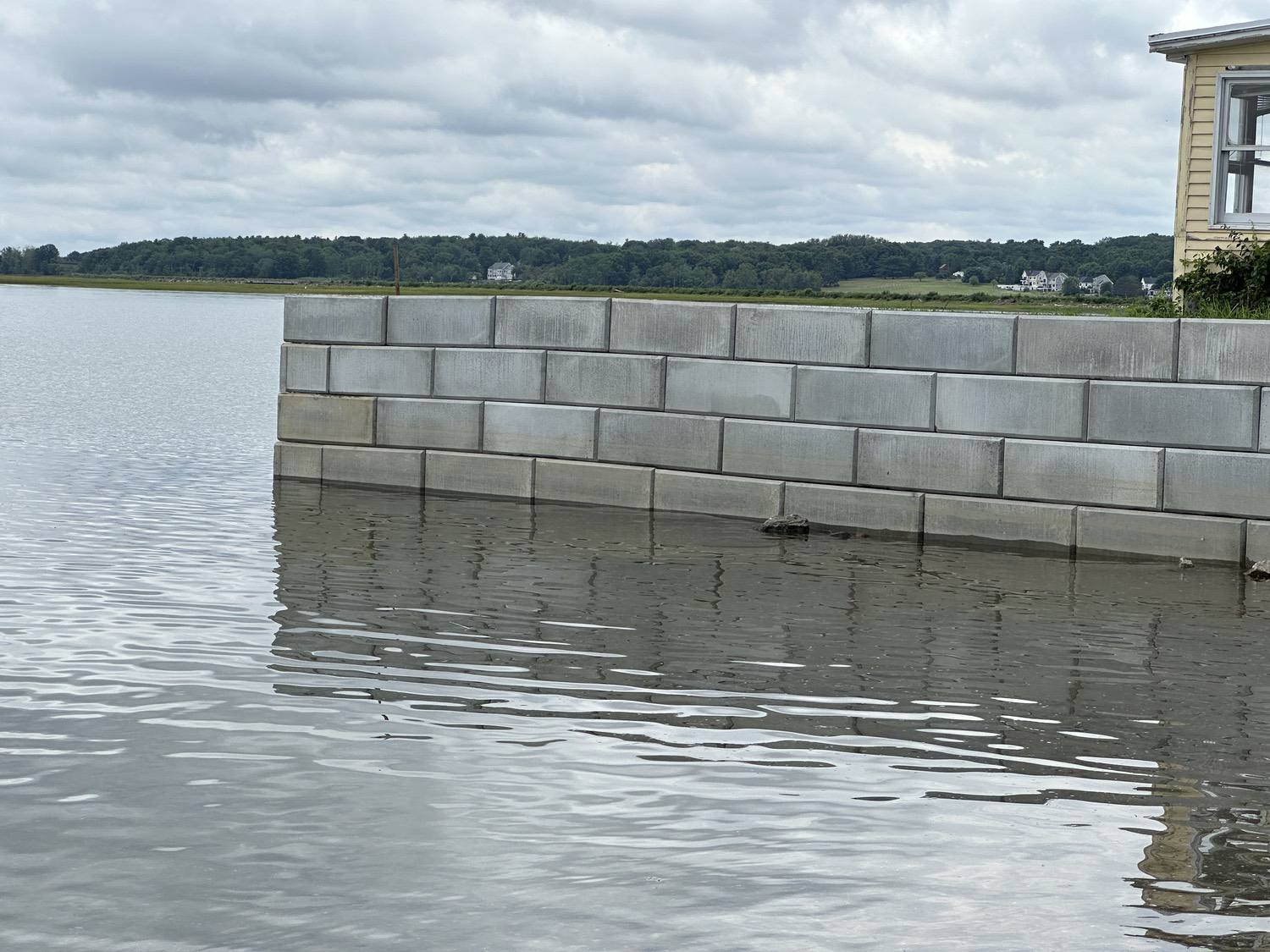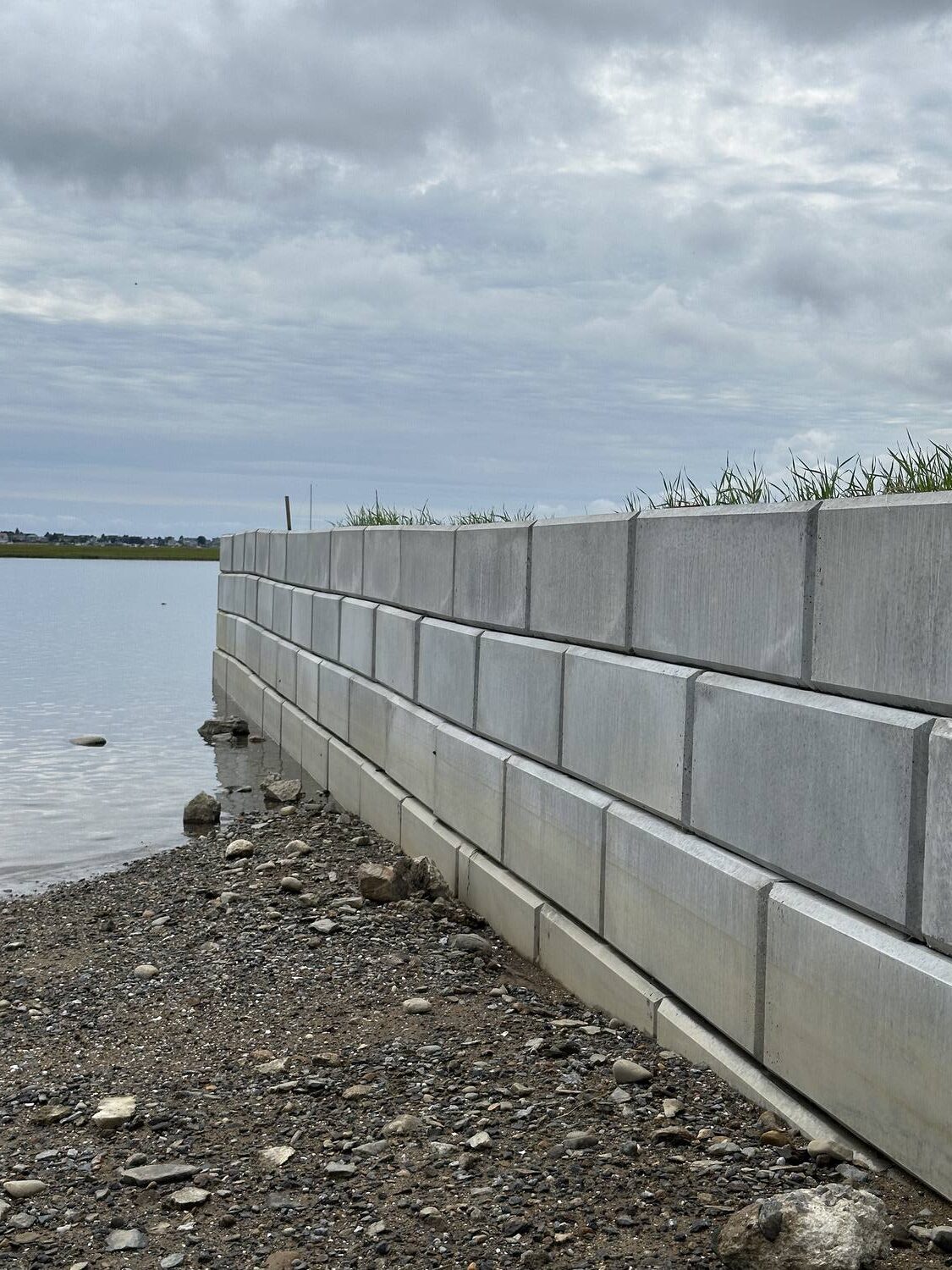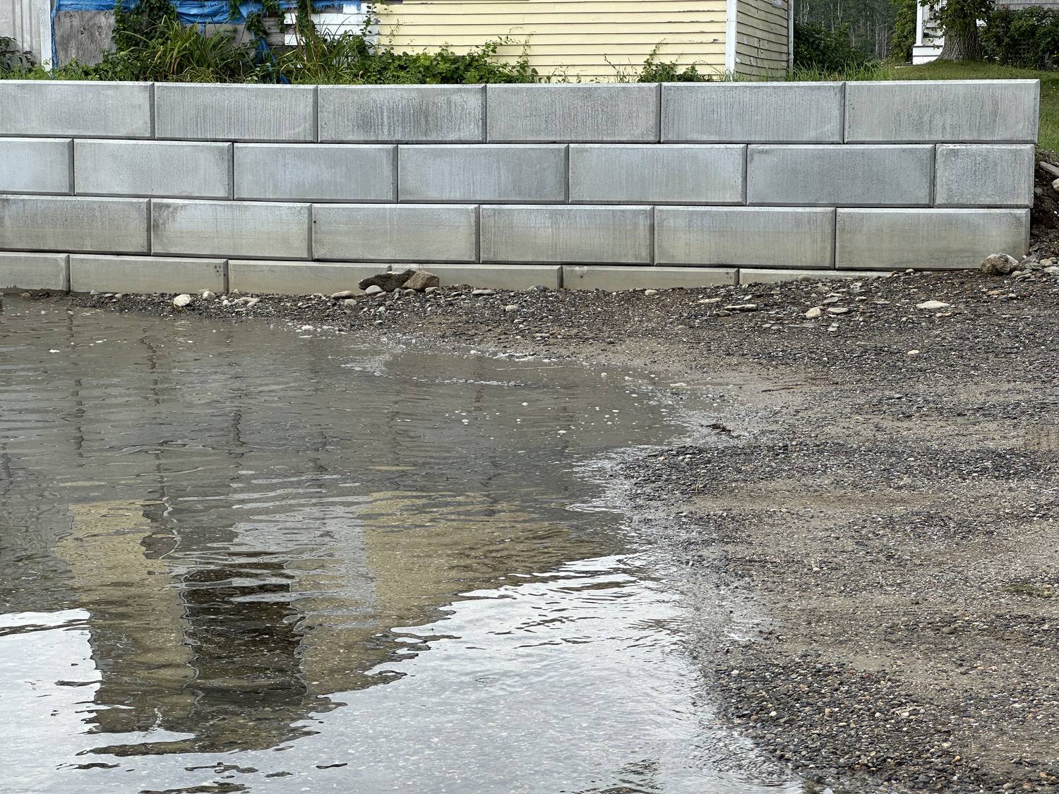 Specially formulated manufactured concrete block walls designed for shoreline applications