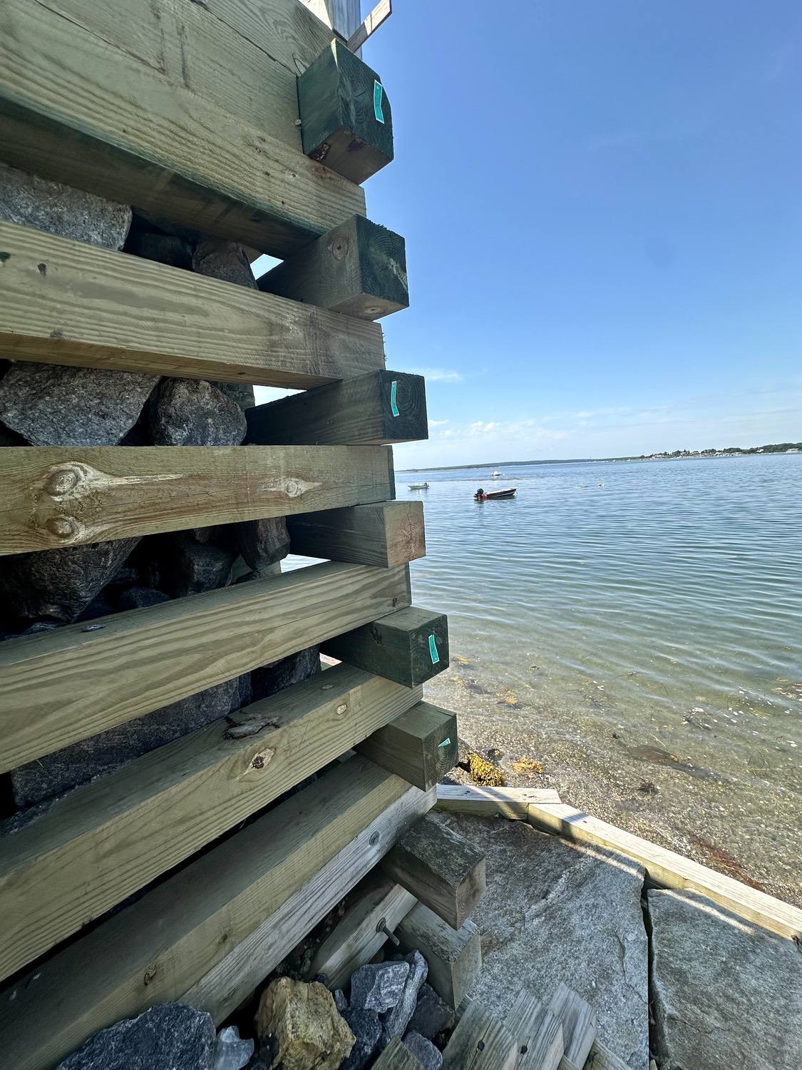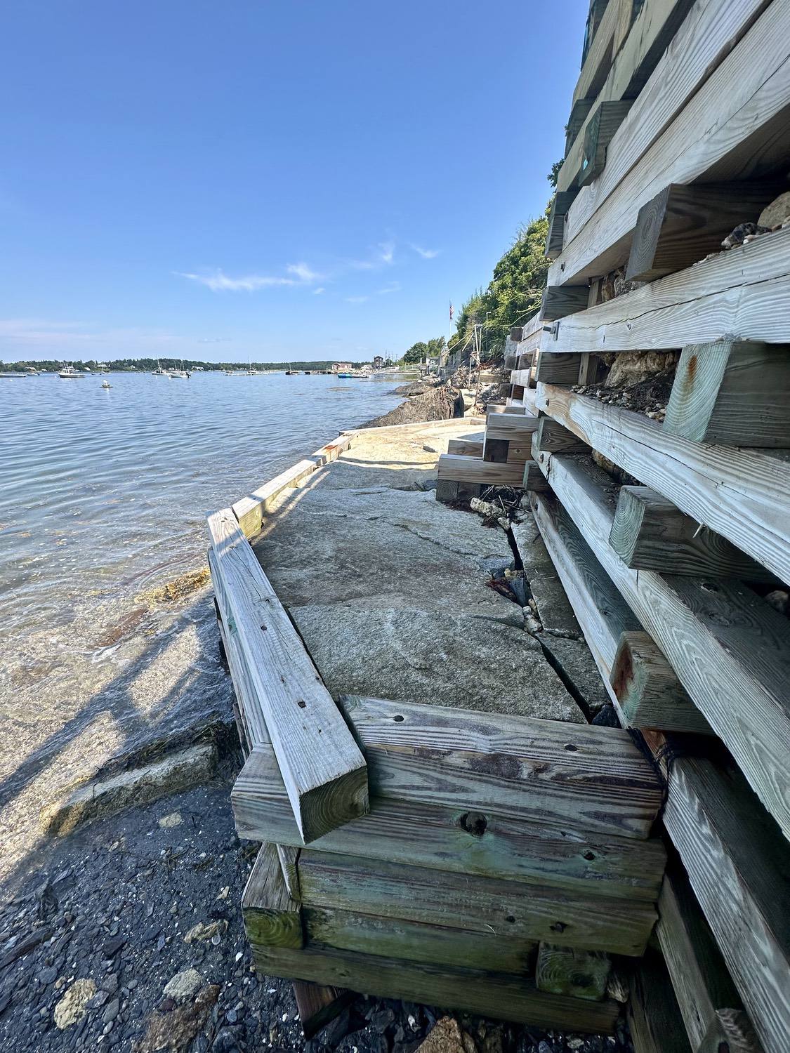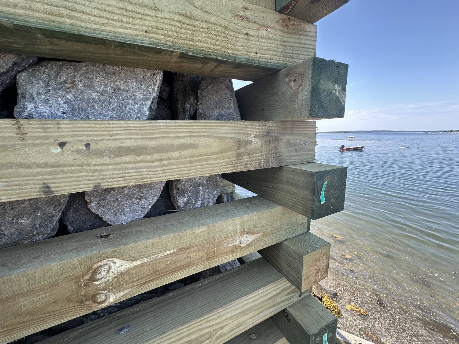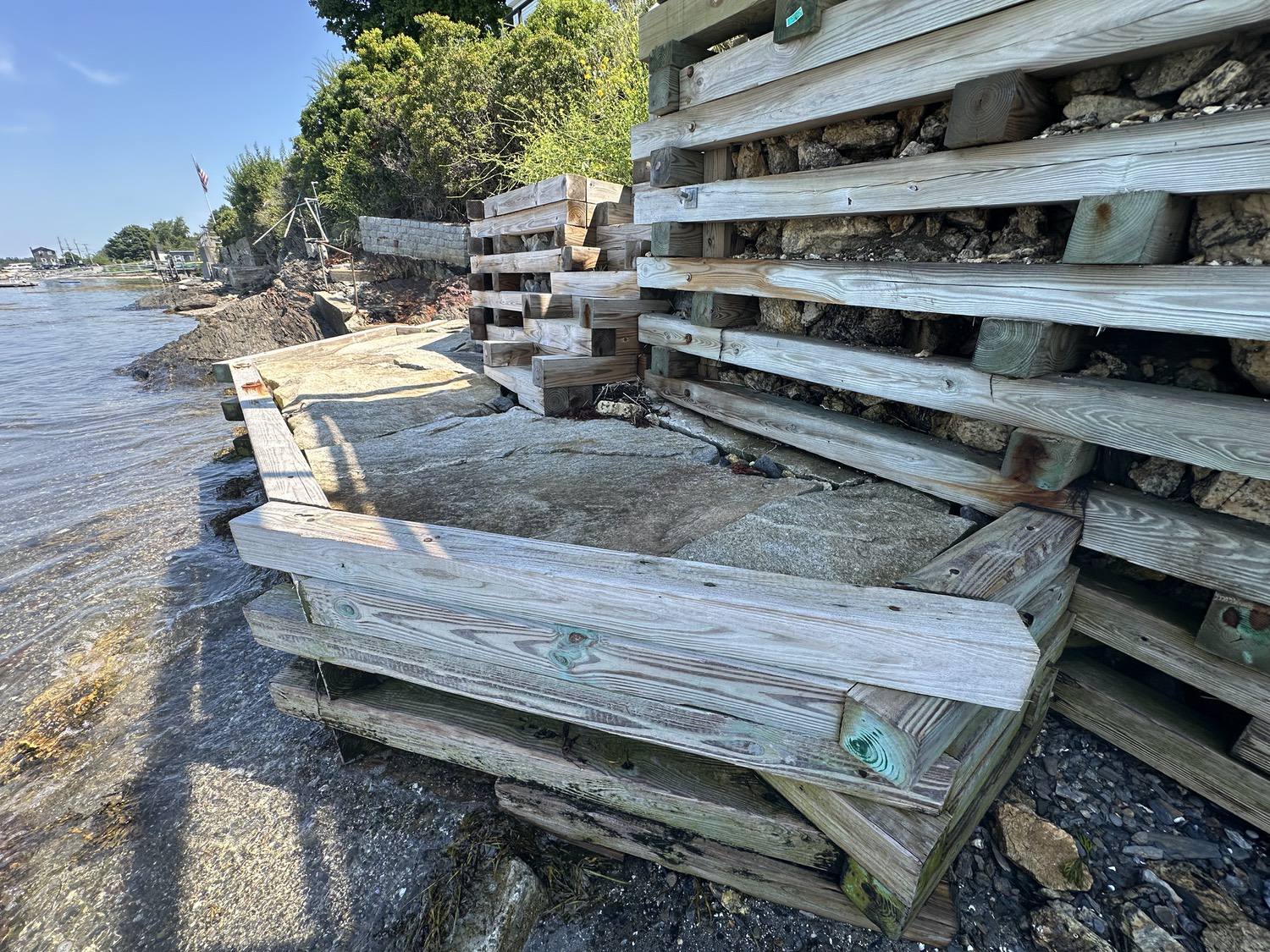 Marine grade pressure treated timber structure back filled with rip rap